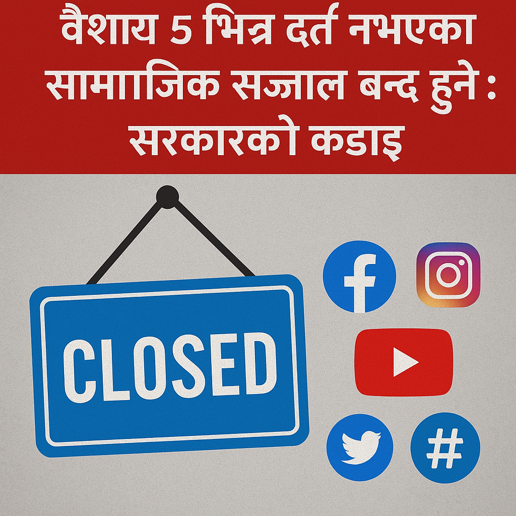 काठमाडौं — नेपाल सरकारले आगामी वैशाख ५ गतेभित्र दर्ता नभएका सामाजिक सञ्जालहरू बन्द गर्ने तयारी थालेको छ। सञ्चार तथा सूचना प्रविधि मन्त्री पृथ्वीसुब्बा गुरुङले दर्ता नभए मेटा कम्पनीअन्तर्गतका फेसबुक, इन्स्टाग्राम, युट्युब लगायतका अन्य प्लेटफर्महरू समेत नेपालमा बन्द गरिने चेतावनी दिएका छन्।