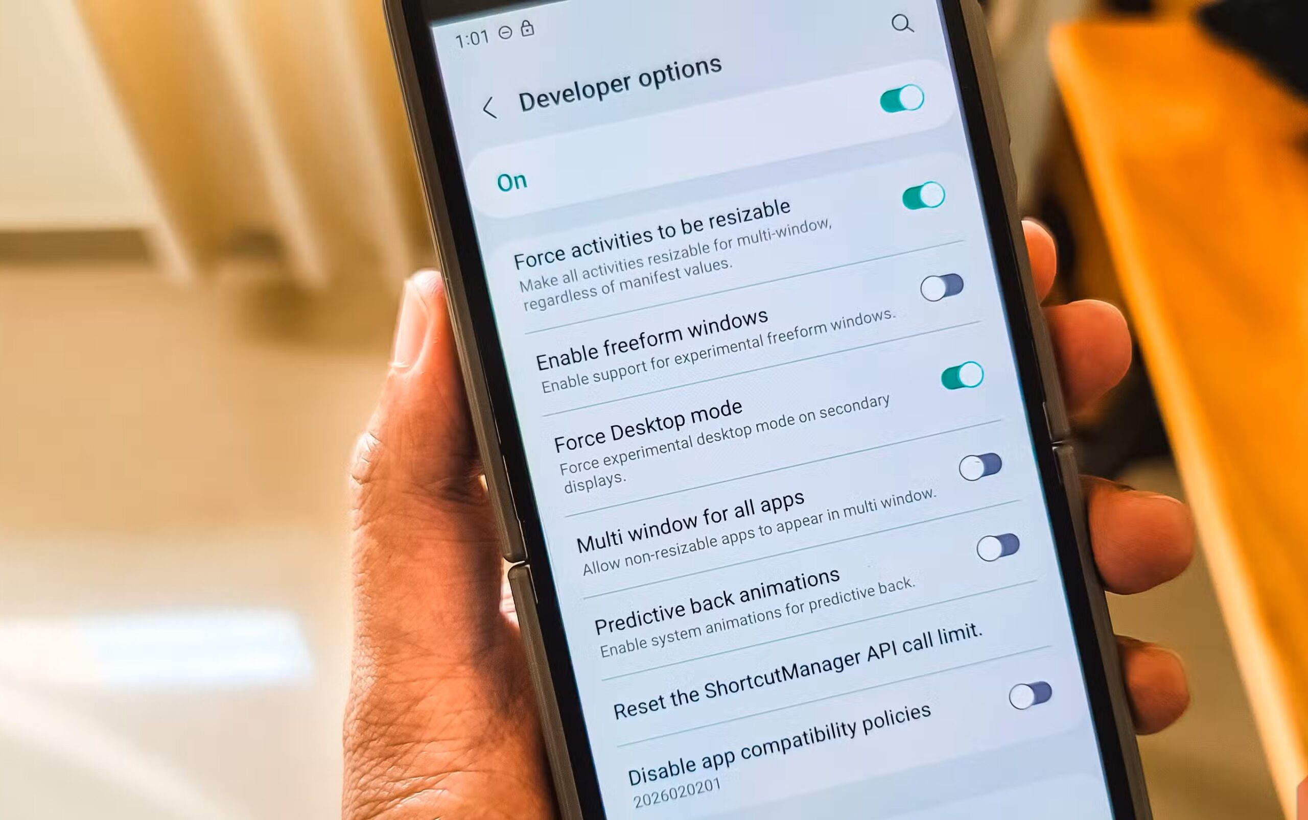 १. डेभलपर अप्सन अन गर्नुहोस्: फोनको Settings > About Phone > Software Information मा जानुहोस् र त्यहाँ रहेको Build Number मा लगातार ७ पटक ट्याप गर्नुहोस्। २. सेटिंग्समा जानुहोस्: अब सेटिङ्सको सबैभन्दा तल Developer Options भन्ने नयाँ मेनु देखिनेछ। ३. फिचर खोज्नुहोस्: डेभलपर अप्सनभित्र छिरेर तल स्क्रोल गर्दै जानुहोस् र ‘Force Desktop Mode’ भन्ने विकल्पलाई अन (Toggle On) गरिदिनुहोस्। ४. रिस्टार्ट गर्नुहोस्: यो फिचर सक्रिय बनाउन एकपटक आफ्नो फोन ‘रिस्टार्ट’ गर्नुहोस्।