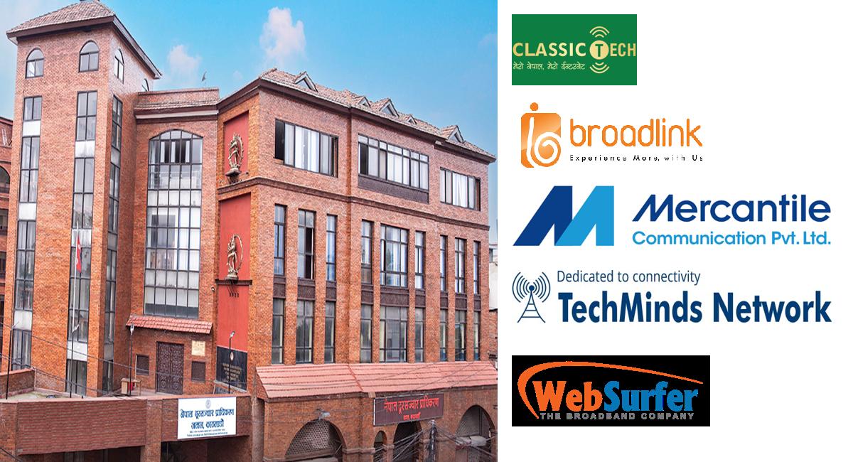 प्राधिकरणको चैत १९ गतेको निर्णयअनुसार क्लासिक टेक प्रा.लि., टेकमाइन्ड्स नेटवर्क प्रा.लि., मर्कण्टायल कम्यूनिकेशन प्रा.लि., ब्रोडलिंक नेटवर्क एण्ड कम्युनिकेशन लिमिटेड र वेब सर्फर नेपाल कम्युनिकेशन सिस्टम प्रा.लि.लाई लिखित सफाई पेश गर्न पत्राचार गरिएको छ।